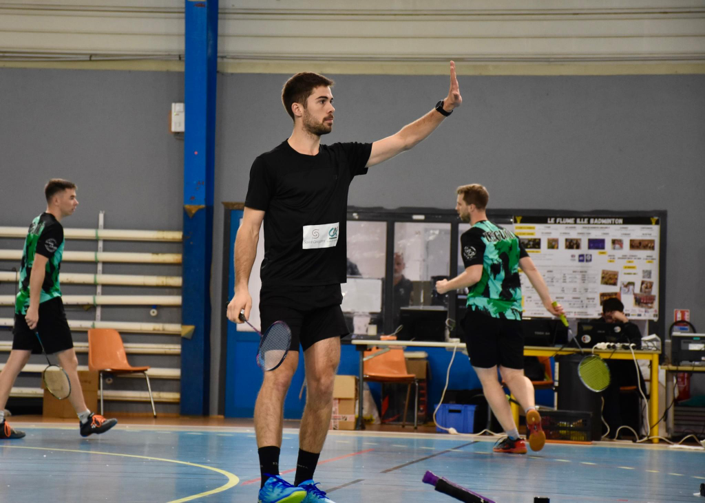 Louis s’élance pour son premier match en R1 (bienvenuuuue Louis). Louis empoche le 2ème point pour sa nouvelle équipe en s’imposant 21-13 et 21-15 contre son adversaire. (Plus qu’à faire la même sur tes prochains matchs !).
