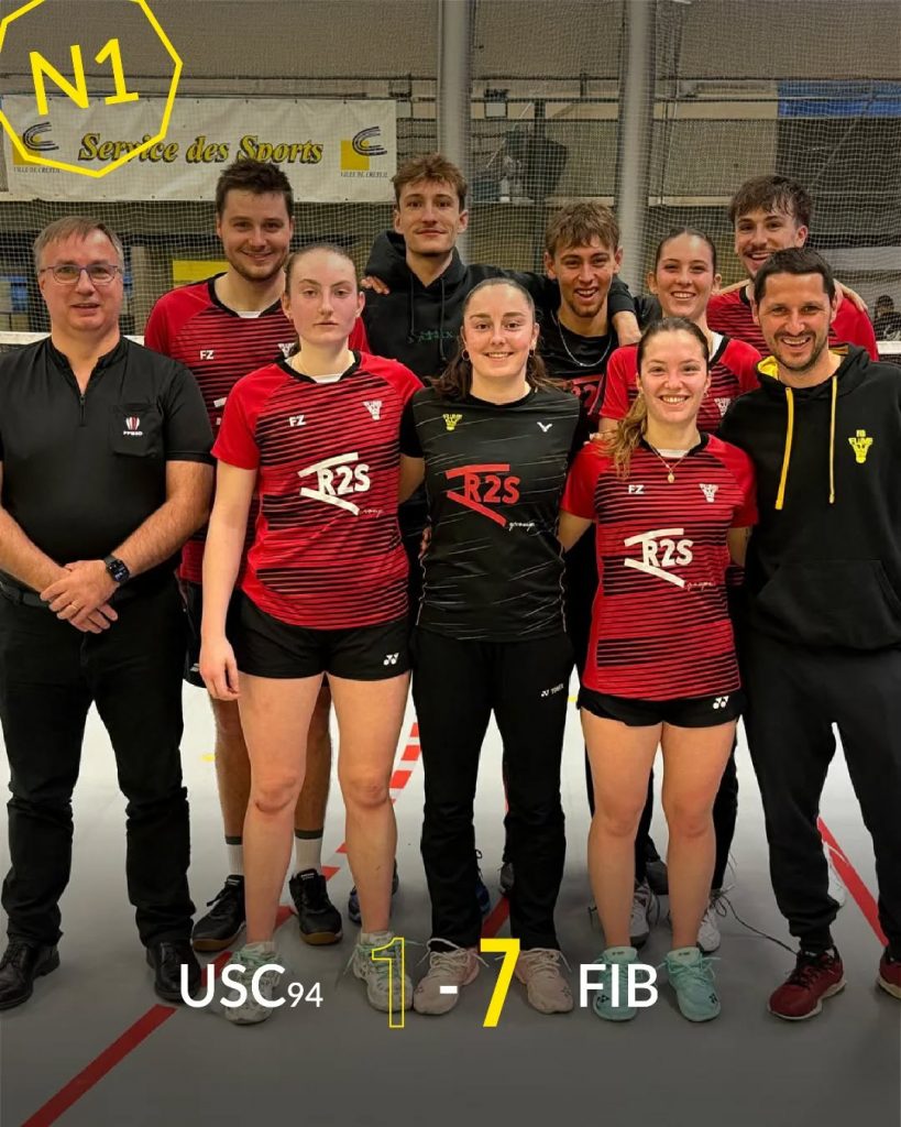 Vient enfin les DH (Louka et Bastian) et DD (Lily et Herve) où nos paires fibiennes réussissent à s’imposer tout deux en 3 sets malgré des matchs où les paires de l’USC ont réussi à imposer leurs jeux pour nous faire déjouer. Le DD se termine sur le score 19-21, 21-17, et 21-16 et le DH 18-21, 21-15, 21-10.
