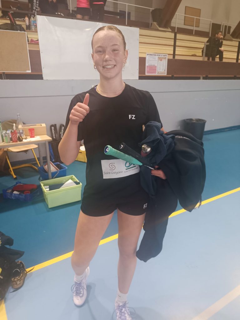Le SD 2 ne va pas tarder à se lancer tandis que notre joueuse Louise est encore allongée (la cause, vous la connaissez) mais c’est une guerrière et avez-vous déjà vu Louise perdre 2 simples de suite ? Oui mais pas AUJOUD’HUI, elle se bat et remporte son match avec la manière en 2 sets ! 22-20 / 21-19